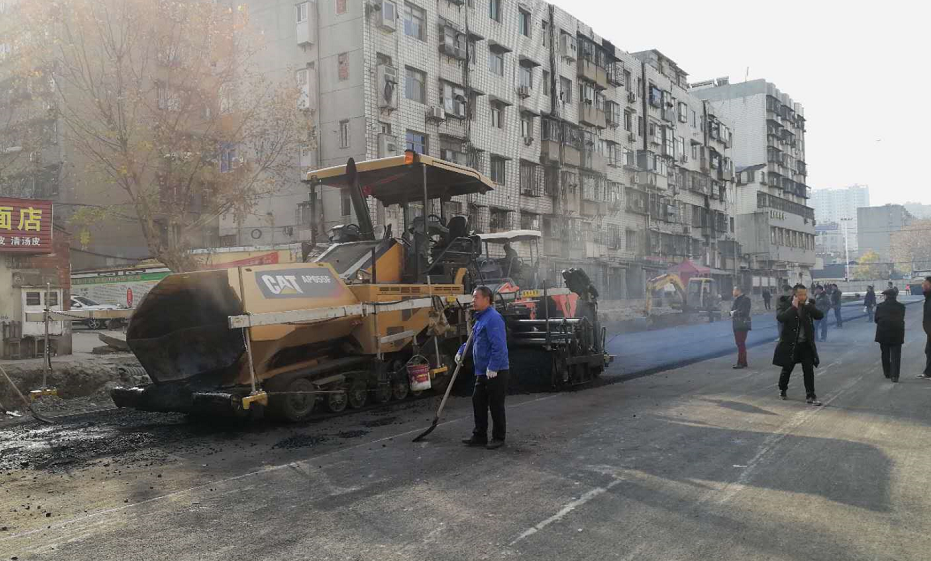 今天一大早,樊城长征东路机器轰鸣,十几辆满载沥青的大卡车集聚于此,在施工工人的操作下大型机械正在摊铺中央四车道的底层沥青,这也意味着长征东路已经具备了通车条件。
