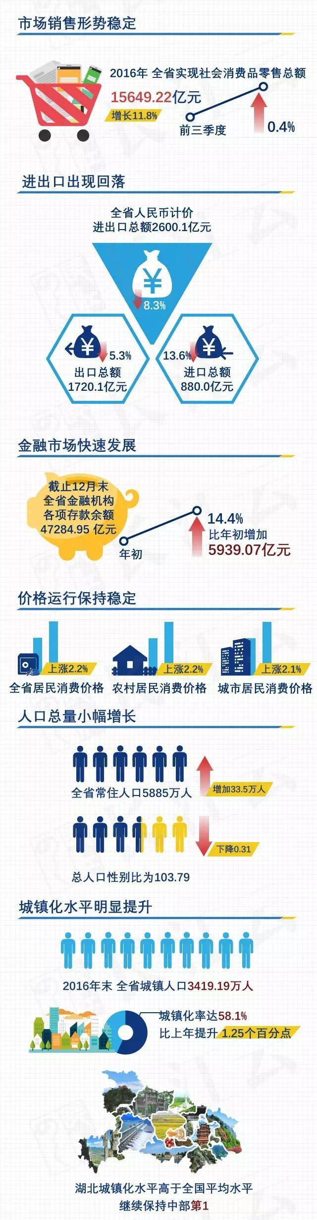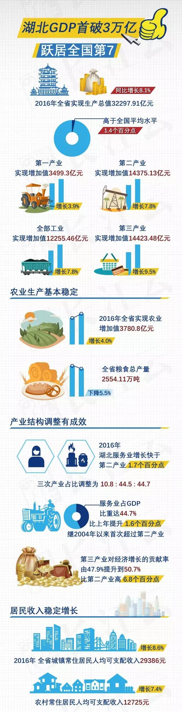 同在今天,国家统计局公布了2016年国内生产总值(GDP)数据。初步核算,全年国内生产总值744127亿元,按可比价格计算,比上年增长6.7%。湖北GDP增长快于全国1.4个百分点。