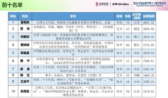 ■ 近日,《TopBrand 2024中国品牌女性500强》榜单揭晓,襄阳籍演员、导演、编剧贾玲从去年的44名跃升至第2位。