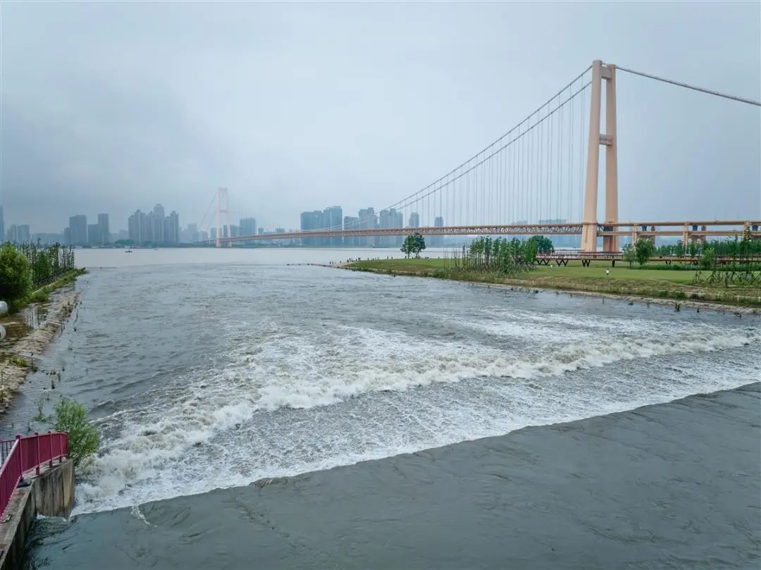 ■ 连日强降雨后,长江武汉段水位正在上涨。据长江水文网6月22日16时发布的数据,长江汉口段水位已达23.10米。记者在武汉杨泗港大桥南岸看到,江南泵站排水泵机组运转,带动滚滚水流汇入长江。