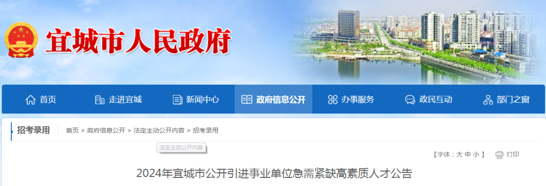 为深入实施人才强市战略,着力优化全市人才队伍结构,加快推进宜城“千亿级、五十强、幸福城”建设,经研究决定,2024年继续公开引进一批急需紧缺高素质人才到我市事业单位工作。现将有关事项公告如下: