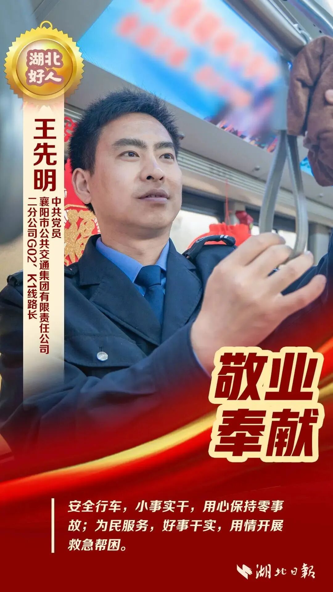 ■ 经全省各地各部门层层推荐,省文明办组织评审“湖北好人”2024年第二季度上榜人物名单揭晓,襄阳市公共交通集团有限责任公司二分公司的王先明获评2024年第二季度“湖北好人”。【阅读详情】
