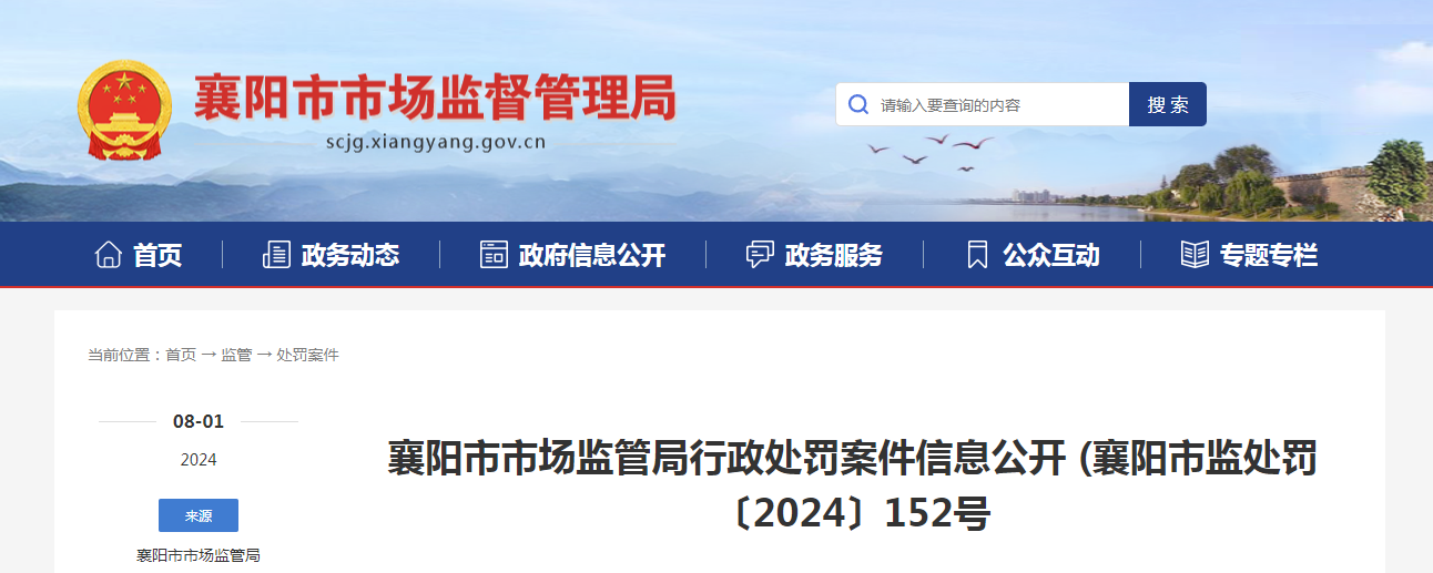 今天(8月1日),襄阳市市场监管局公开一起行政处罚案件信息。