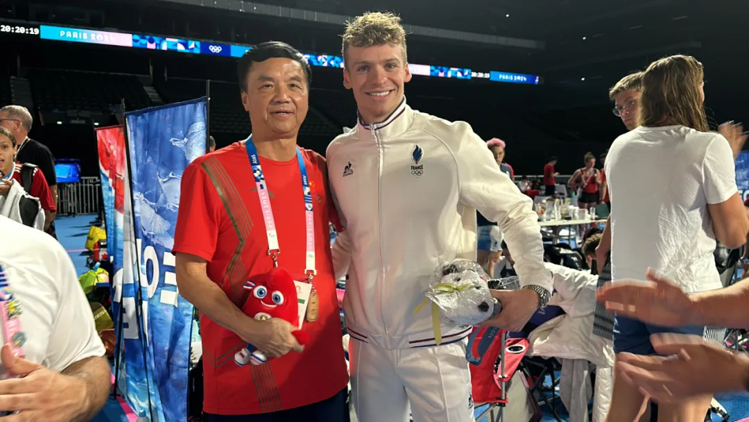 ■ 巴黎时间8月4日赛后,法国游泳运动员马尔尚再度上门,就之前的“马尔尚无视朱志根握手”一事,向中国运动员汪顺的教练朱志根面对面进行说明并致歉,双方互送礼物,马尔尚送的是巴黎奥运会吉祥物毛绒玩偶,中方回礼的则是一只熊猫玩偶。