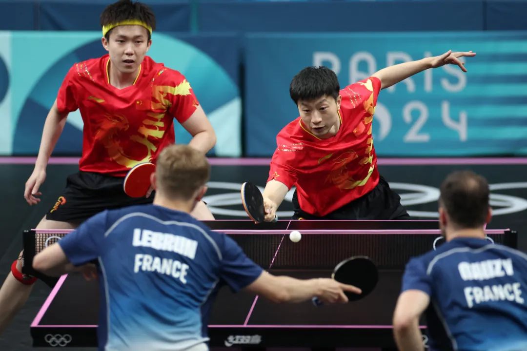 ■ 8月8日,巴黎奥运会乒乓球男子团体赛半决赛中,由王楚钦、樊振东 、马龙组成的国乒男团战胜法国队成功晋级决赛,中国队将向五连冠发起冲击。