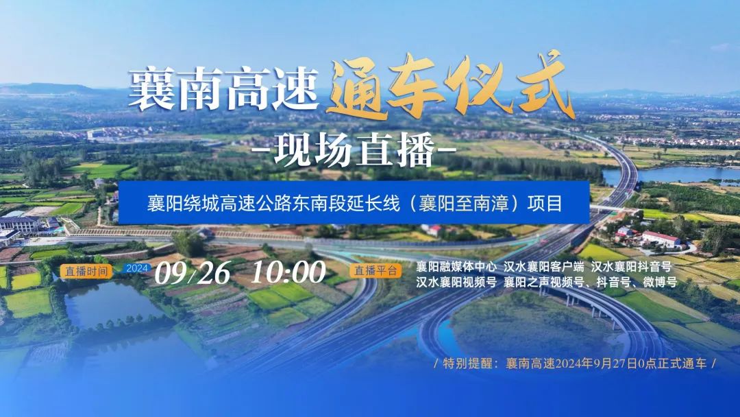 ■ 9月27日零时,襄阳绕城高速公路东南段延长线(襄阳至南漳)将正式开通运营。9月26日上午,我市将在襄南高速九集收费站举行通车仪式。上午10:00,襄阳融媒体中心将对通车仪式进行现场直播。【阅读详情】