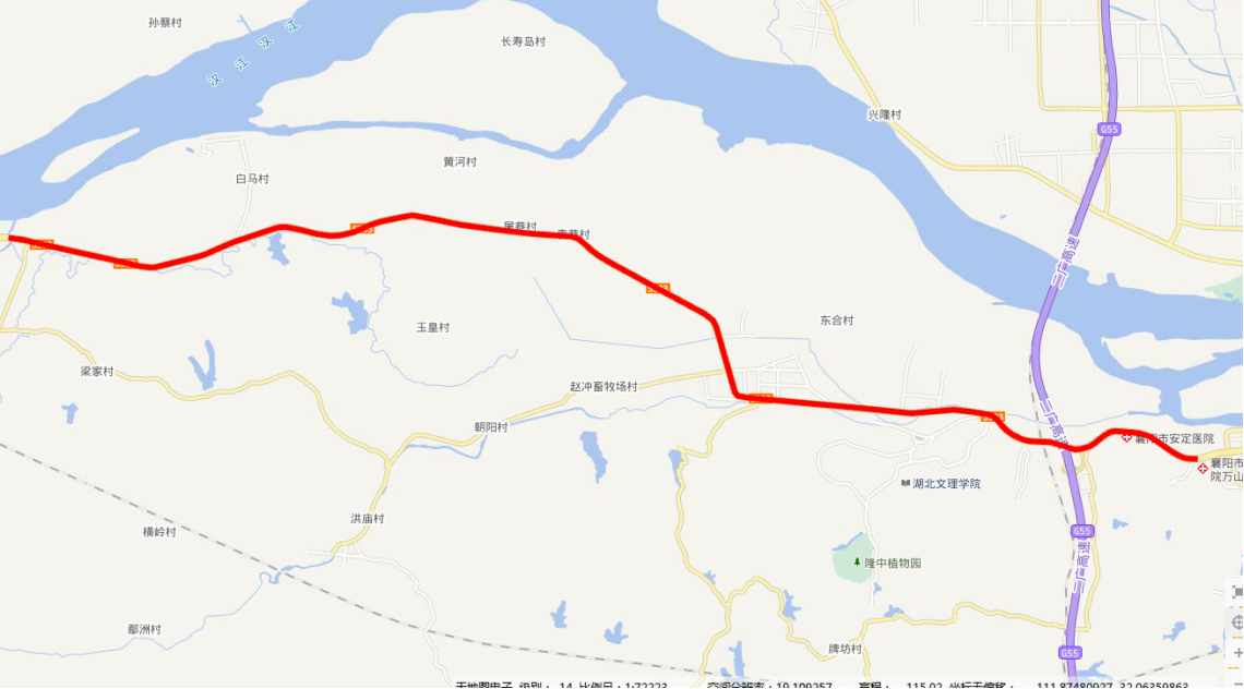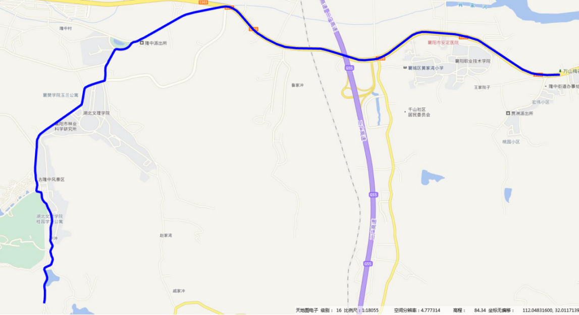 变更后:隆中大道(起万山天桥止卧龙镇回龙村与谷城县交界处,长23.3千米)
