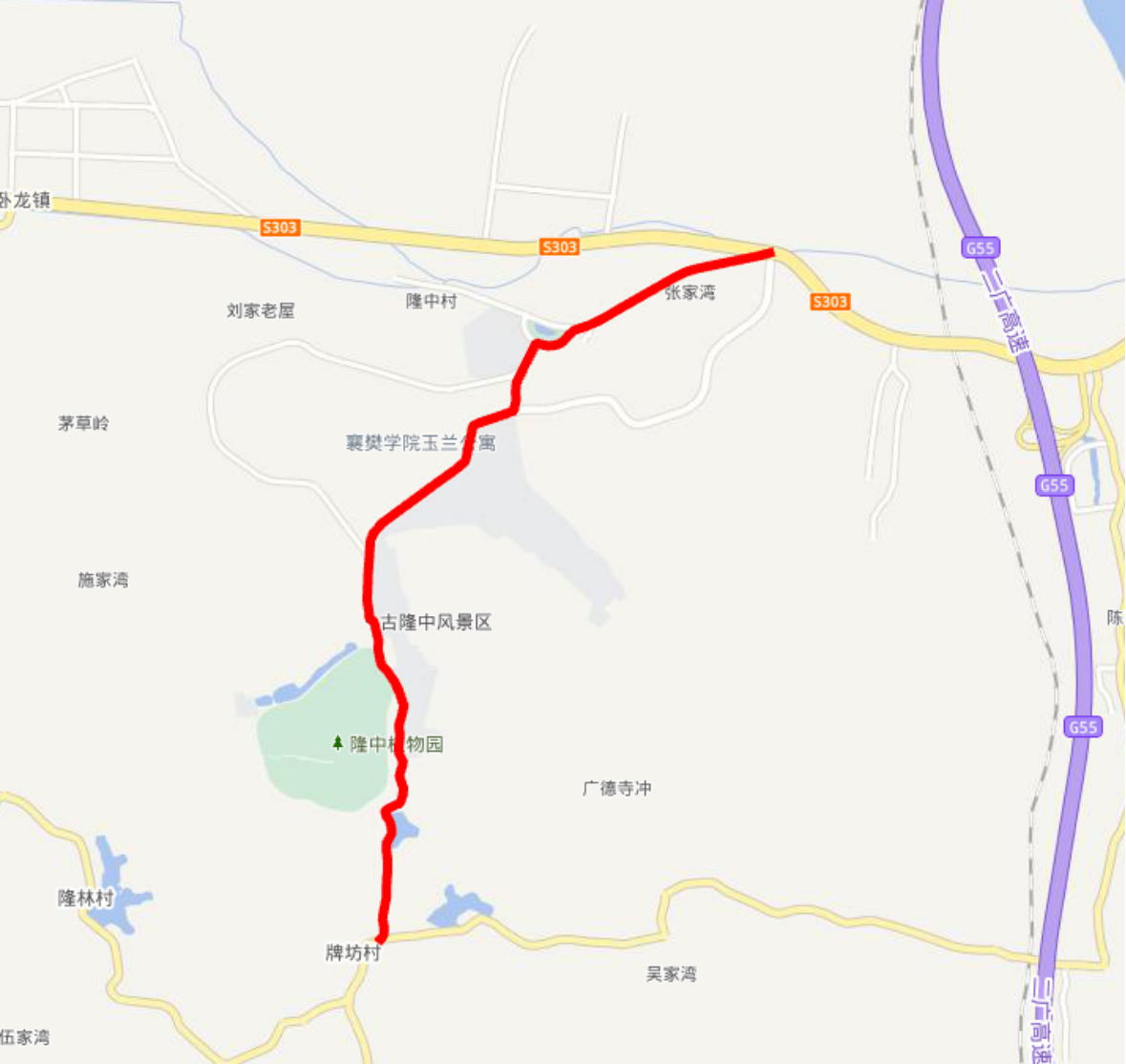 变更前:隆中大道(原起万山天桥止隆中风景区,长9.7千米)