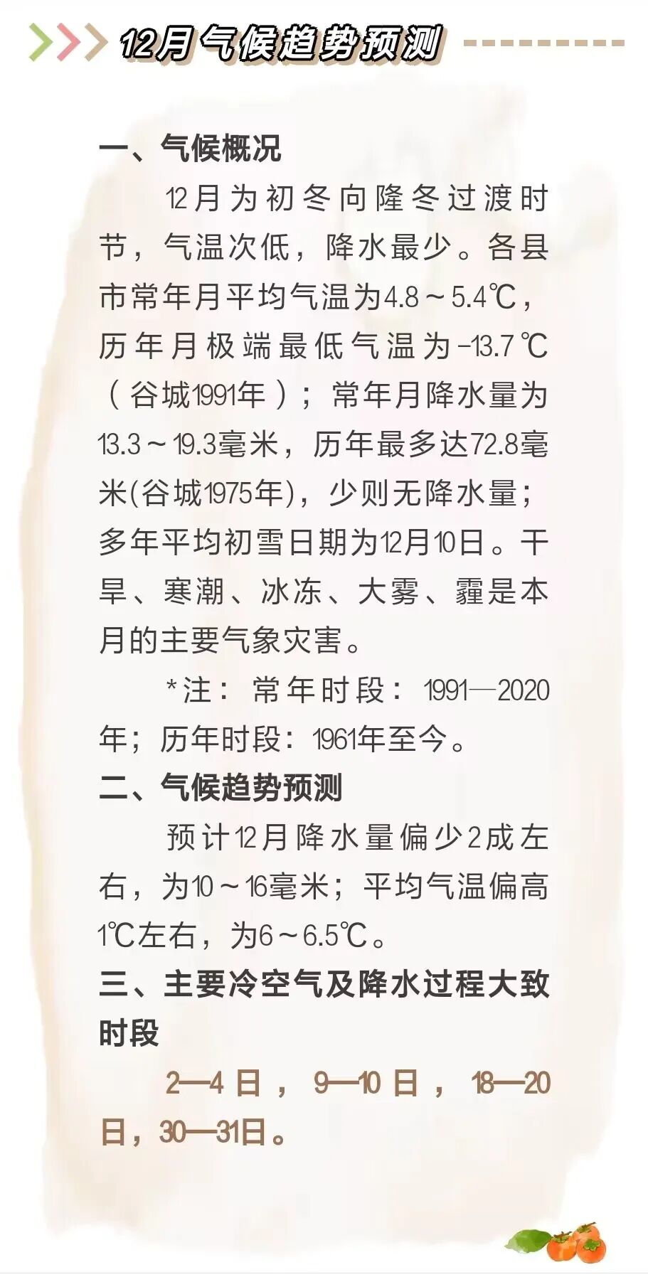 在全省范围内,预计12月2日以前,全省以晴到多云为主,最高气温将逐步升至17~23℃。2日以后冷空气将频繁来扰。