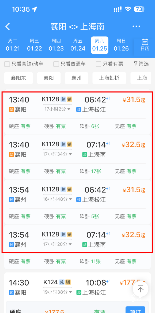 其中,K1128/5次襄阳-上海南,硬座2折,票价最低31.5元,硬卧7折,开行时间为1月22日-28日;K1656/7次深圳东-襄阳列车,硬座8折,开行时间为1月29日至2月2日、2月7日至2月12日。