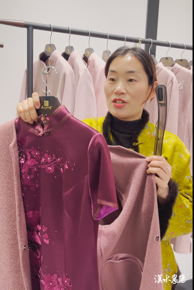 “相比于普通大衣、裙装,‘新中式’单品既应景又日常。”一位来自河南南阳的顾客对着镜子换上一件淡紫色的羽绒服:“我快60岁了,这次年前来襄阳玩,看到这家店就想换换风格,第一次尝试一下‘新中式’的衣服。”