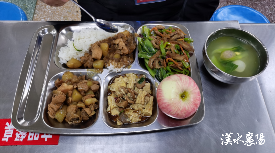 襄阳四中义教部六年级学生徐明泽说:“有土豆烧鸡、腐竹炒肉,还有牛肚、青菜,在食堂吃方便一些,而且比外边卖的饭便宜。”