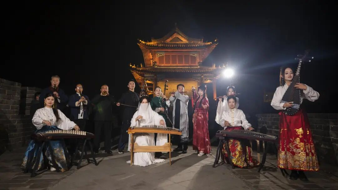 ■ 3月9日晚,近百名武侠文化爱好者和游客齐聚于襄阳古城墙上,以民乐合奏《射雕英雄传》主题曲《铁血丹心》的方式,共同纪念金庸先生诞辰101周年。现场游客中不乏远道而来的香港同胞,悠扬乐声与古城夜色交织,唤起一代人的江湖记忆。【阅读详情】
