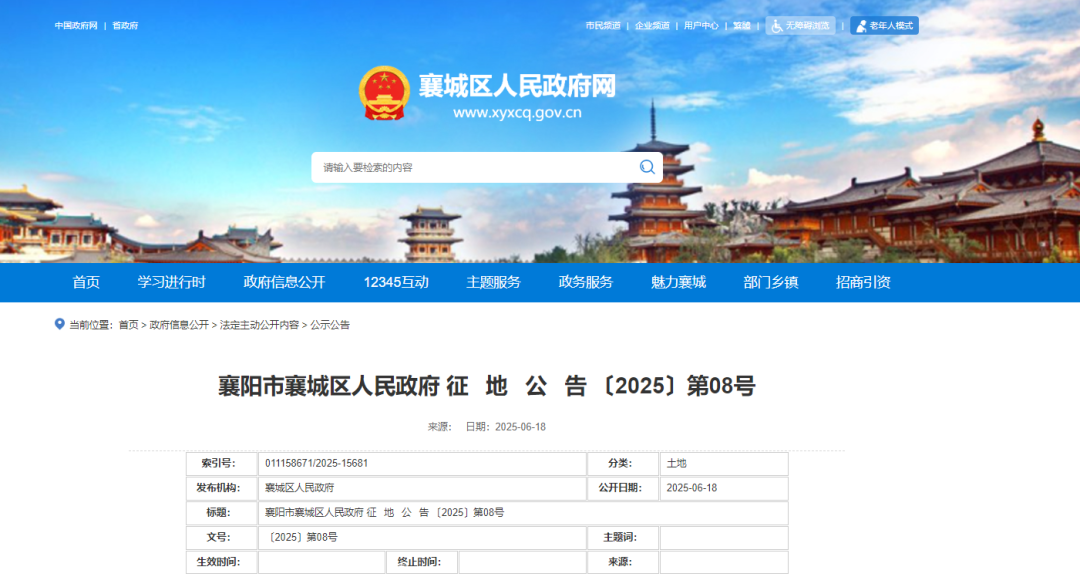 (二)本公告公告期限为10个工作日,公告范围为余家湖街道办事处黄龙观村村委会,并已在襄城区人民政府门户网站公布,公布网址为http://www.xyxcq.gov.cn/。