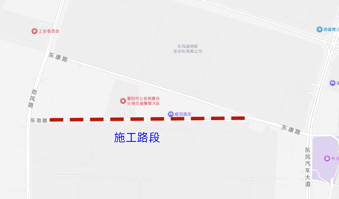 一、2025年7月20日至9月30日占用东劲路(东康路至劲风路段)全部机动车道分段封闭打围施工。施工期间,有通行需求的车辆,建议绕行劲风路、东康路、东风汽车大道路等周边道路。