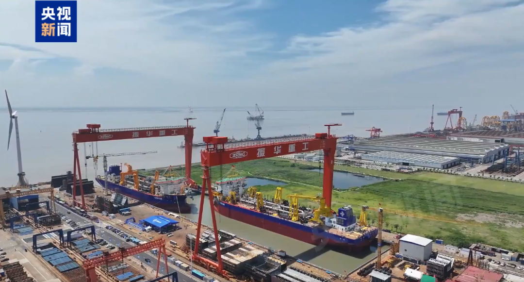 ■ 8月26日,我国自主设计研发建造的两艘超大型耙吸挖泥船在江苏启东成功下水,泥舱容量亚洲第一,装载效率世界领先。