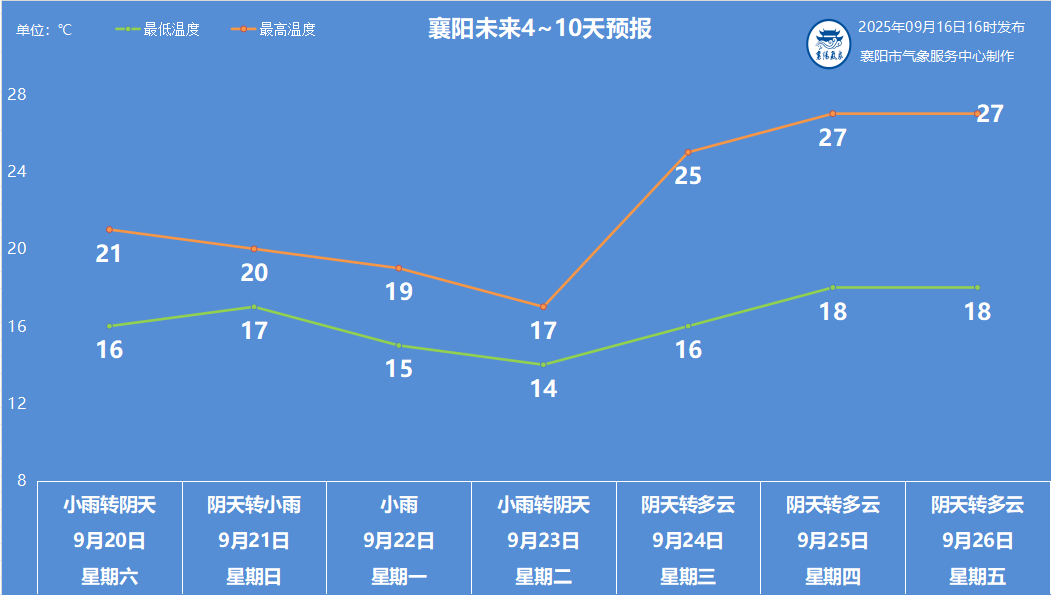 后晚到大后天:阴天有小雨,偏北风2~3级,14~17℃