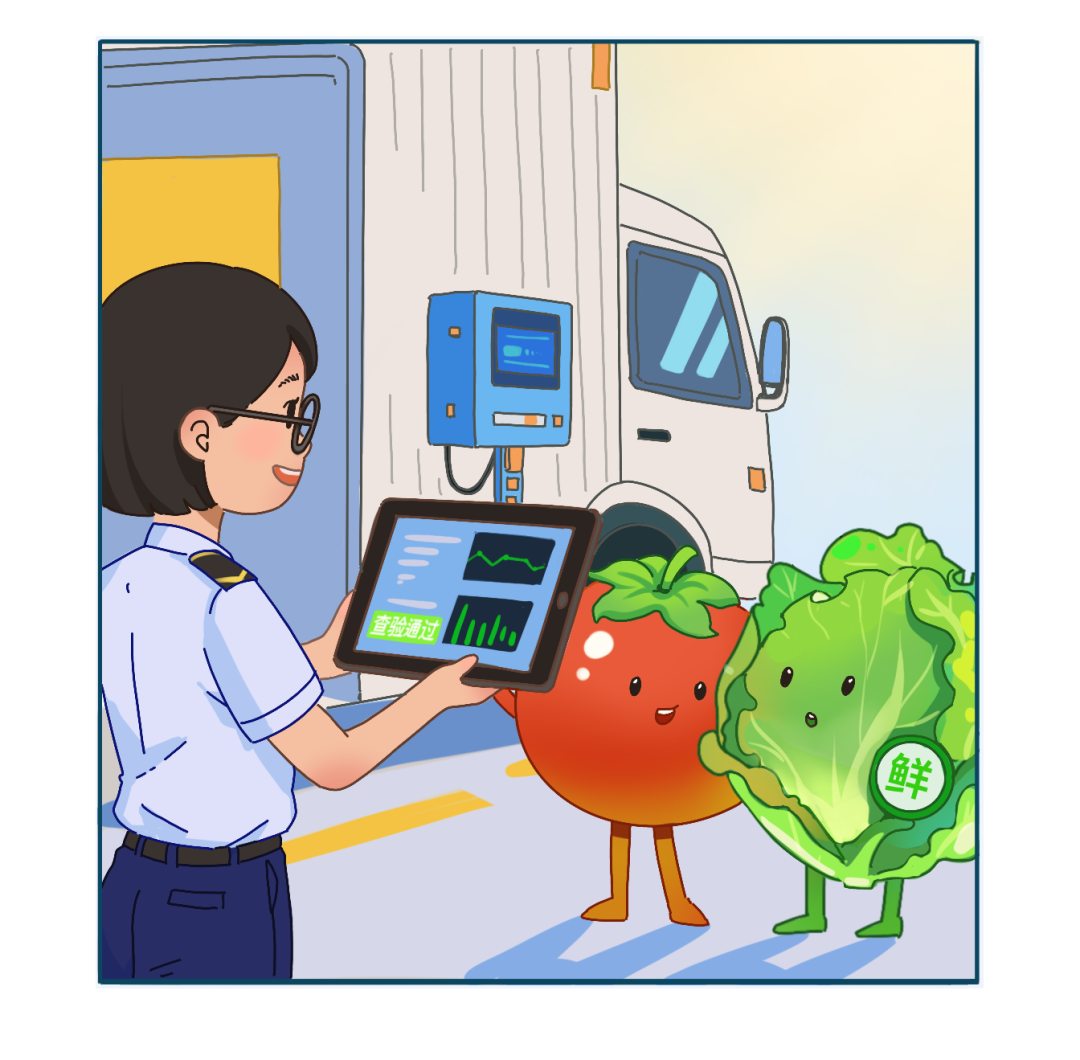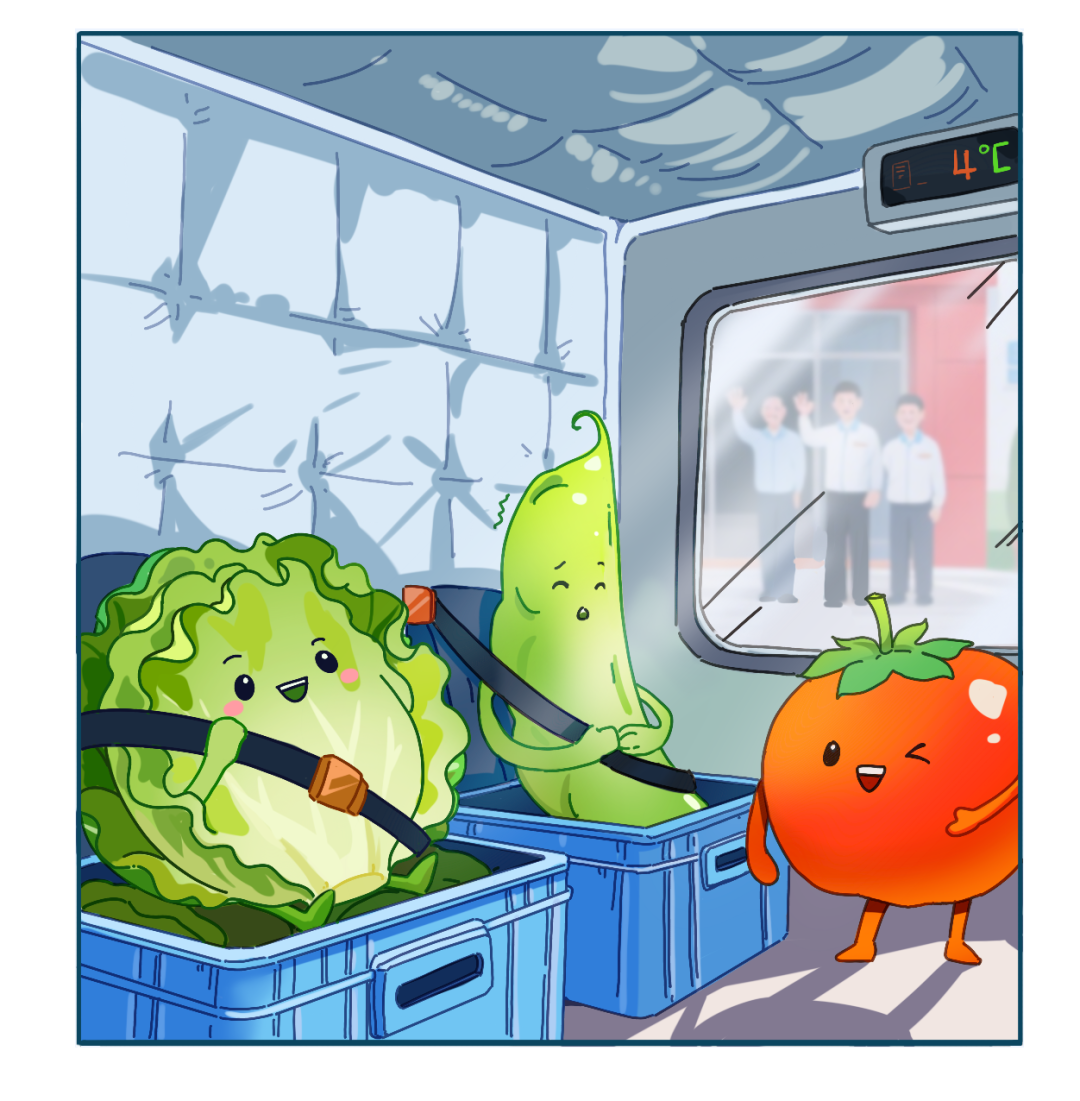 “查验未见异常,立即装车,加施铅封!”半小时后,我和柿崽、豆角哥,还有黄白菜、油麦菜、萝卜、茄子等20多吨各类蔬菜伙伴们,有序登上了供港冷链货车。