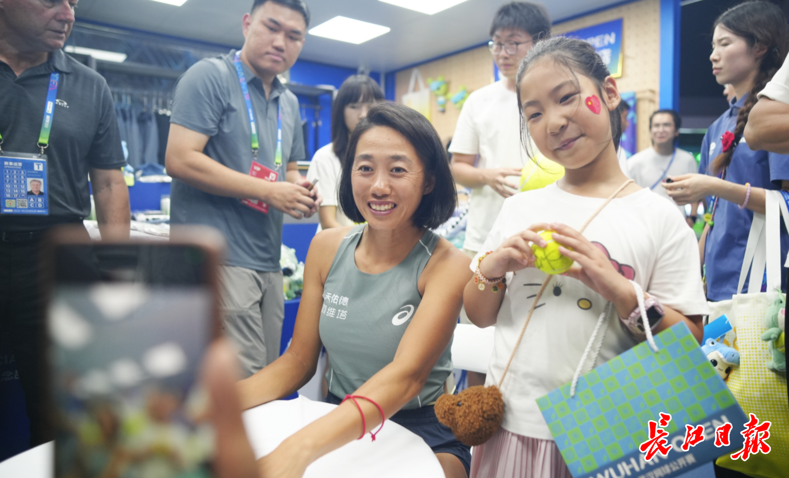 10月7日,张帅在武网嘉年华活动现场为球迷签名,与球迷合影交流互动。记者何晓刚 摄