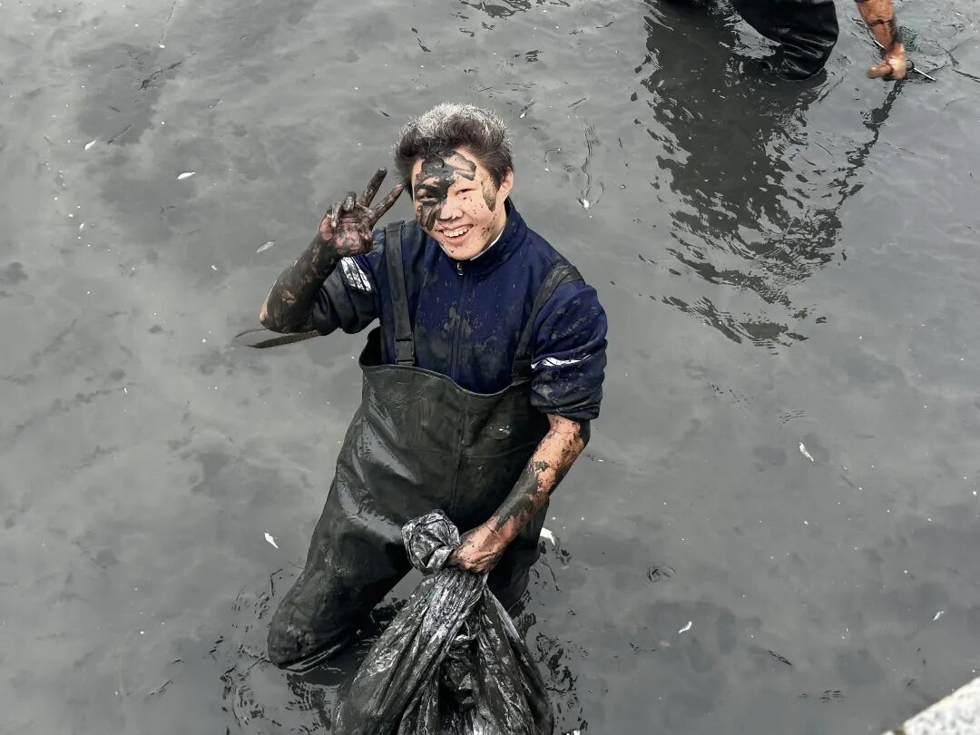大一新生王宏宇与学姐关祖欣合力擒获一条25斤重的青鱼,成功摘得本届“鱼王”称号。“去年鱼王是我们抓的,今年卫冕成功!明年想定制一套合身的捕鱼装备,今年的衣服太大啦!”关祖欣举着渔获兴奋地说着,同时向老师提出建议。首次参与捕鱼节活动的王宏宇则直呼“体验感拉满,太开心了!”