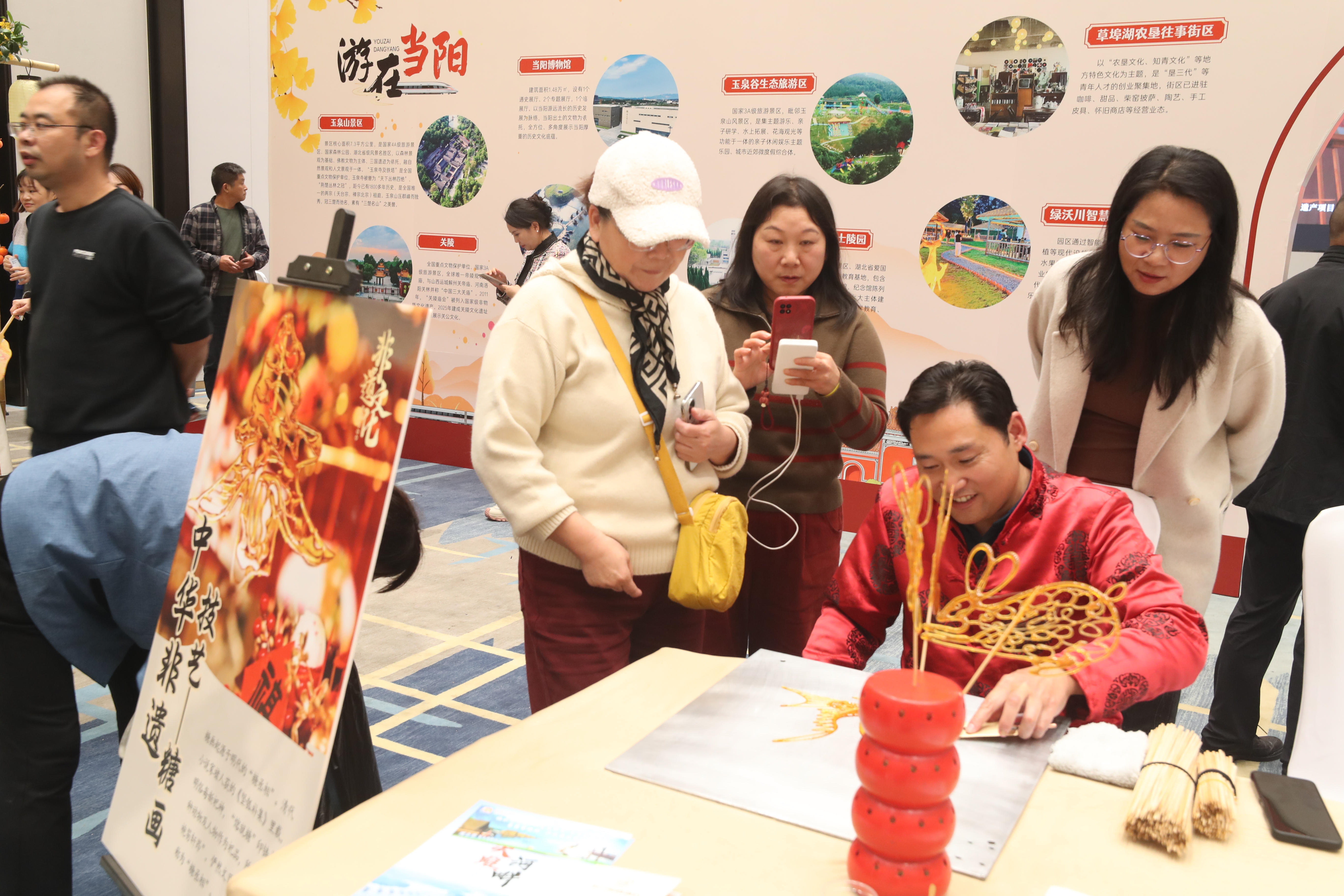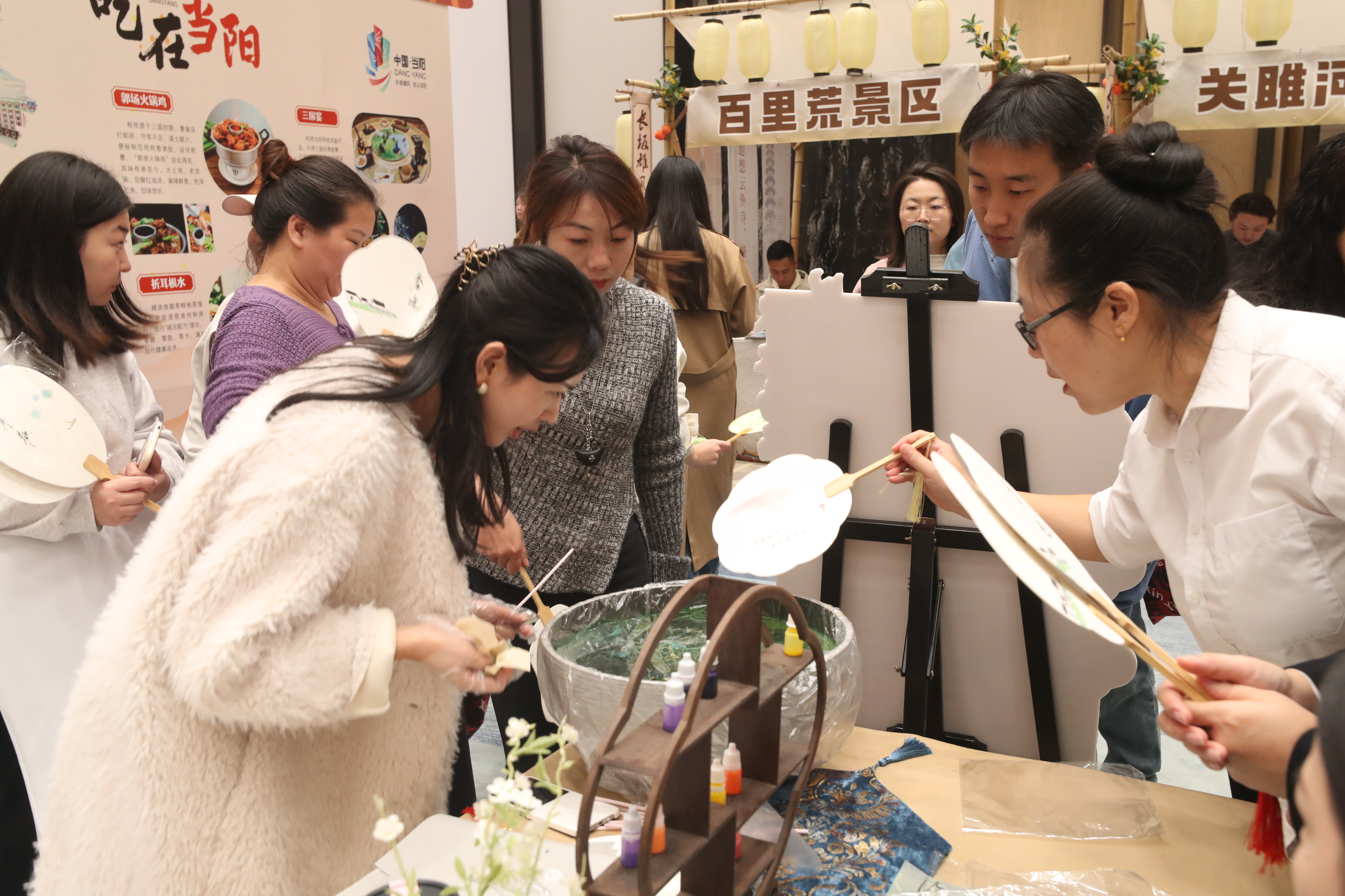 此次襄阳之行,是乘着高铁游当阳暨城市品牌推介活动对外推介“首秀”。年内沿江高铁武宜段开通,呼南高铁、沿江高铁在当阳并线设站,届时当阳至襄阳的出行时间将缩短至1小时内,这标志着两地文旅合作将迈入“同城时代”。本次活动共邀请来自襄阳本地90余家旅行商代表、襄阳市旅游协会、旅行社协会、自驾俱乐部协及媒体代表参加,共商合作、共话未来。现场精心策划了欢迎晚宴、主题推介与工农旅市集“三个一”系列环节,全方位展示当阳魅力与诚意。欢迎晚宴气氛温馨融洽,两地嘉宾畅叙合作,共谋发展;品牌推介环节则通过rap秀、情景剧和文旅线路发布等,生动呈现了当阳深厚的人文底蕴和丰富的旅游资源;一旁的文旅市集更是人气高涨,各类当阳特色产品为与会嘉宾带来沉浸式体验,真切感受当阳风情。